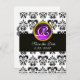 Cartão Postal De Anúncio DAMASCO PRETO E BRANCO Monograma de ametista roxa