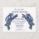 Meus desenhos de coelho azul e branco inspirados em cerâmica fornecem pontos focais animados que enquadram as informações importantes da sua empresa! "Salve a data" para uma grande inauguração, venda ou promoção. Muito espaço para personalizar a frente e verso usando os modelos de texto e menu de personalização. Um design adequado para uma loja de presentes ou designer de decoração. Seria útil para um grupo de resgate de coelhos, evento relacionado a animais, instalação ou clínica de cuidados com animais de estimação ou serviço veterinário. E não se esqueça do coelho da Páscoa! Um design único encontrado apenas na Zazzle! www.zazzle.com/store/BonneIdeeArt