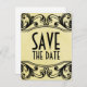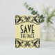 Cartão postal de anúncio de data de casamento elegante e sofisticado com redemoinhos vintage, com um fundo amarelo macio de textura envelhecida e bordas floridas em redemoinho. Este design antigo é perfeito para anunciar um casamento com tema vintage. É fácil de personalizar, basta adicionar os detalhes do casamento nos campos de texto. Clique em "Personalizar" para mais opções.
