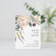 Nós projetamos este cartão-postal "Salve a Data" com Floral Branco para completar seu casamento rústico tropical escuro. Com sua folhagem em aquarela boêmia e suas flores modernas boho de inverno, incluindo protea, dália e lótus seco, o design certamente destacará seu tema sombrio, minimalista, verde e branco. Altere o texto e adicione uma foto para torná-lo seu. Além disso, certifique-se de ver o resto da coleção para encontrar itens coordenados que unirão todo o seu casamento! https://www.zazzle.com/collections/white_floral_collection-119896729923706651