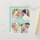 Cartão postal de anúncio de data de casamento em verde menta com várias fotos