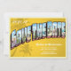 Este cartão postal de save the date é ótimo para um casamento em destino de praia. O design é baseado em antigos cartões postais de férias retrô vintage. É totalmente personalizável, podendo ser usado para uma cerimônia de casamento realizada em qualquer local de praia popular. Uma maneira divertida e casual de anunciar o seu grande dia para amigos e familiares. Os save-the-dates são especialmente importantes para casamentos em destinos. Certifique-se de enviá-los com quatro a seis meses de antecedência para que os convidados possam planejar com antecedência e reservar passagens. Casamentos em destinos de praia populares incluem Havaí, Aruba, México, Jamaica, Bahamas, Caribe e Ilhas Virgens.