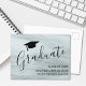 Este cartão postal de lançamento de graduação moderno é decorado com um fundo ombre em tons de cinza e tipografia de na moda. Facilmente personalizável com seu nome e detalhes.