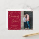 Cartões postais de anúncio de gravidez com foto em dourado e burgundy. Pais esperando! Tipografia moderna manuscrita "chegando em breve" para compartilhar a sua feliz notícia com familiares e amigos. Características acima e moldura de confetes dourados na parte inferior em fundo burgundy. Você pode personalizar o design substituindo os textos simples e a foto vertical. #3351 Se precisar de ajuda ou itens correspondentes, entre em contato comigo!