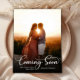 Cartões postais de anúncio de gravidez com foto em breve. Pais expectantes! Tipografia manuscrita branca moderna e elegante com o texto "Em breve!" para compartilhar a sua feliz notícia com familiares e amigos. Apresenta um texto manuscrito branco sobre uma foto inteira. Você pode personalizar o design substituindo o texto de exemplo e a foto vertical. #3343 Se precisar de ajuda ou itens correspondentes, por favor entre em contato!
