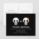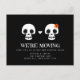 Este cartão postal comovente com o tema do Dia das Bruxas apresenta uma ilustração de um par de crânios na frente. A cor de fundo é personalizável e todo o texto é editável. Use-o para compartilhar seu novo endereço ou convidar amigos para uma festa de aquecimento da casa no Halloween.