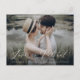 Precisa mudar sua data de casamento? Nossa elegante mudança é a data em que os cartões postais de adiamento do casamento são perfeitos para ajudá-lo a notificar os convidados da sua nova data de casamento. O na moda muda as características do cartão-postal "Love is Patient" (O amor é paciente) em uma cobertura de script de caligrafia branca e moderna com sua foto horizontal do noivado. Personalize o cartão-postal adicionando seus nomes, endereço de devolução, detalhes do casamento, site do casamento, etc.