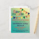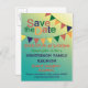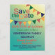 Design de reunião familiar com texto colorido. Salve o cartão de data.