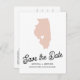 Enviar um cartão de data para salvar seu noivado! O casamento de Destino do Estado Moderno ILLINOIS salve a data com a silhueta do Estado ILLINOIS em cor-de-rosa pincelado com coração, salve a data em uma fonte contemporânea e seu nome e data de casamento na parte inferior. Na parte traseira, um espaço para uma mensagem personalizada e seu endereço de retorno. Clique no botão "personalizar" para mover o coração para o local da sua cidade!!! Todo estilo de texto, cores, tamanhos também podem ser modificados para ajustado das suas necessidades. ESTADO E COR DO CORAÇÃO SÃO EDITÁVEIS! Para obter ajuda ou solicitação personalizada (sem encargos), entre em contato conosco em citronelladesign@gmail.com ou visite nossa loja