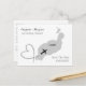 Cartão postal de casamento de destino elegante para casais que se casam em Lanzarote. Com um mapa de silhueta cinza prateado, avião e coração varrido. Muito legal e fácil de personalizar com seus detalhes pessoais.