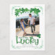 Rua moderna. Cartão postal de Pregança Fotográfica do Dia de Patrick. Design apresenta a sua fotografia, o script de tipografia ''muito sortudo este ano'' em letras de tendências e a data de vencimento. Perfeito em anunciar suas grandes notícias e desejar Dia de São Patrício feliz à sua família e amigos.