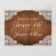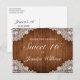 Convite de cartão postal para festa de aniversário de Sweet 16. Estilo rústico com fundo de tábuas de madeira e decoração de renda branca. Mais itens estão disponíveis neste estilo em nossa loja. Você pode editar ainda mais o design, alterar cores, fontes e adicionar texto extra clicando no link "personalizar ainda mais".