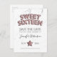 Cartão Postal De Anúncio Doce 16 Salve A Data Balões Dourado Rosa Brilho