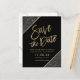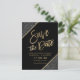 Cartão Postal De Anúncio Dourado brilho script preto salvar a data