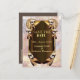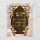 Um design de caçador de sonhos com guarnições douradas e marrons que inclui uma teia redonda de vida em círculo de bambu com penas castanhas e miçangas vermelhas em um fundo de pena macia para um casamento.