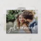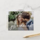 Este cartão-postal de anúncio, branco e moderno, ou elopeio, apresenta duas das suas fotos favoritas de casamento, com a moderna escrita rustica e um pequeno coração, na moda, e diz "recem casados". A parte de trás contém uma segunda foto com uma camada translúcida e mais detalhes e informações sobre o seu casamento. Um olhar simples e moderno que é a maneira perfeita de deixar a família e os amigos saberem que você amarrou o nó!
