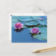 Dois lírios de água bonitos em uma lagoa tranquilo. Personalize o cartão para uma ocasião especial ou um convite. Fósforo com selos ou presentes de galeria clara movente.