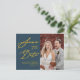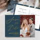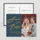 Foto Mínima De Casamento De Manuscrito Dourado Elegante Azul Dusty Salva O Cartão-Postal De Anúncio De Data. Avise sua família, amigos e colegas que você marcou uma data para sua celebração de casamento com este casamento elegante, na moda e moderno, salve o cartão de convite. Todos os textos estão pré-organizados para que você personalize fácil e rapidamente com seus próprios detalhes.