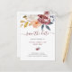 Estas economias na moda da não-foto do casamento outono o cartão da data caracterizam um buquê floral da aguarela bonita, com flores e folhas nas máscaras de Borgonha, de pêssego, de cinzas azuis, de branco, e do ouro amarelo. A tipografia moderna do roteiro adiciona um toque à moda. Este cartão é especialmente perfeito para casamentos de Borgonha, rústicos, e de outono.