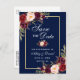 Cartão Postal De Anúncio Elegante Borgonha Floral Salva a Data Azul Dourado