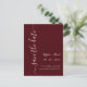 Cartão Postal De Anúncio Elegante Borgonha Salvar a Data
