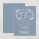 Com ilustrações florais botânicas em um fundo azul empoeirado. Você pode escolher a cor de fundo favorita para criar um design exclusivo. Personalize com os detalhes da mudança de data. Criado por Thisisnotme©