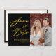 Cartão Postal De Anúncio Elegante Script Preto e Dourado Salve a Data