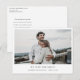 Este simples e na moda moderno anúncio de casamento com elopementos de fotos postcard modelo apresenta 'WE TIED THE KNOT!' e os seus nomes e a data de casamento abaixo da sua foto.Você pode escolher mudar a fonte, pontuação ou cor usada para vários elementos de texto desta design na frente e/ou atrás. Por exemplo, você pode optar por dar uma certa cor ao seu texto de nome, ou mudar o texto WE TIED THE KNOT! para WE CASAED! Ou outra mensagem adequada ao seu estilo. Você pode optar por excluir algo ou alterar um campo de texto inteiramente com uma mensagem diferente. Por exemplo, você pode mudar o formato dos nomes para incluir seu sobrenome, ou para o formato Sr. e Sra. (sobrenome), etc. Nos dois lados tornamos o fundo transparente para deixar a cor do papel simplesmente servir como tom base. Você pode editar isso e escolher uma cor se preferir. Colocamos algum texto de marcador de posição no verso para que você exclua e substitua por sua própria mensagem, com ou sem seus nomes, se você quiser assinar manualmente quando receber os cartões postais. Mas você pode simplesmente optar por excluir nosso texto de marcador de posição e deixar o vazio de trás completamente para que você possa escrever uma mensagem manualmente em cada cartão e assinar seus nomes. O tipo de papel padrão, matte, tem um calor suave e resiste a manobras, então é uma escolha excelente para escrevendo sua própria mensagem, se você optar por fazer isso. Você pode editar isso e escolher semirbrilho. Em qualquer caso, lembre-se de que há texto de marcador de posição também no verso e apague todo o nosso texto de amostra/marcador de posição em ambos os lados do cartão, assim como nossa foto de exemplo! A cor do texto na frente é um preto ligeiramente suavizado, e no verso é uma cinza muito escura que é na sua maioria negra, mas você pode mudar a cor, a fonte e o tamanho do texto de qualquer texto. Esperamos que você aproveite o experimento com este modelo de anúncio de elopemento de fotos limpo e contemporâneo e o faça exclusivamente seu com as ferramentas intuitivas de design, sua foto favorita e sua inspiração. Oferecemos também este design em formato de cartão simples, por isso, por favor, verifique a nossa coleção de anúncios de elopeios para mais possibilidades!