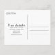 Estes guardam os cartões postais são para o casal divertido que mal pode esperar para celebrar no seu casamento com a sua família e amigos. A design de tipografia fotográfica moderna "Bebidas grátis e um casamento ao lado" é uma das nossas mais populares! Seus convidados de casamento vão adorar. Personalize com sua foto e detalhes do casamento na frente e atrás.