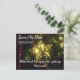 Um cartão postal de casamento personalizado para salvar a data, apresentando uma linda e iluminada estrela de Natal em uma árvore de Natal. Perfeito para um casamento de Natal. Adicione os nomes da noiva e do noivo e a data do casamento ao design para personalizar.