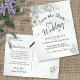 Este belo cartão postal foi feito para avisar seus amigos e família do seu casamento. Apresenta um belo design de bolo com fundo azul empoeirado e pintado à mão de folhas de eucalipto de cor aquosa e galhos de lavanda nos cantos. O verso tem um gráfico de "lápis em" bonito assim como espaço para um site e outras informações.