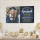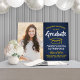Compartilhe as notícias alegres de uma próxima festa de formatura com o marinho de fotos azul e ouro personalizado, salve os convites para cartão-postal de data. A imagem e o texto deste modelo são simples de personalizar com o nome do formando, o ano de aula e outros detalhes do lançamento da sua escolha. O design apresenta uma elegante fronteira, caligrafia na moda moderna, tipografia clássica de vintage e uma foto favorita, como uma fotografia de mais velho ou uma imagem da cerimônia de inauguração. Observe que o ouro é amarelo impresso, não é folha metálica. Estes cartões de na moda são uma maneira elegante de compartilhar uma celebração especial de dia com a família e os amigos. Parabéns ao formando!