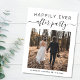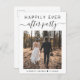 Elemento moderno ou anúncio de casamento menor e convite postal para informar família e amigos que você se casou em uma pequena cerimônia íntima de casamento, e convidá-los para uma recepção de casamento. A frente apresenta sua foto do dia do casamento e "Feliz Festa Sempre" em uma mistura de simples tipografia e uma escrita de tendências com balanços. Sob sua foto você pode adicionar seus primeiros nomes e a data do casamento. Ao contrário, você pode personalizar sua mensagem e adicionar detalhes de festa ou recepção e seus nomes em um script semelhante a assinatura.