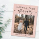 Um elopemento cor-de-rosa moderno ou um anúncio de casamento menor e um cartão postal de convite para a recepção para informar a família e os amigos que você se casou numa pequena cerimônia íntima de casamento, e convidá-los para uma recepção de casamento. A frente apresenta sua foto do dia do casamento e "Feliz Festa Sempre" em uma mistura de simples tipografia e uma escrita de tendências com balanços. Sob sua foto você pode adicionar seus primeiros nomes e a data do casamento. Ao contrário, personalize sua mensagem com mais detalhes e adicione detalhes de festa ou recepção e seus nomes em um script semelhante a assinatura.