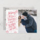 Este cartão-postal de fotos de feriado moderno e chico dobra como um salvamento do anúncio de data para o novo casal. A frente mostra suas fotos com flocos de neve desenhados à mão e tipografia escrita à mão que diz "Beijos Felizes e Feriados Quentes de Logo Serem Sr. e Sra." em vermelho. A parte traseira apresenta uma foto de cheio com uma camada branca transparente com os detalhes de data, endereço e mensagem personalizada.