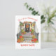 Anúncio de Festa de Bloco do Halloween O design de Cartão postal apresenta uma pintura de aquarela original de uma varanda frontal decorada festivamente assustada. Cheio de abóboras, jack ou lanternas, várzea, fantasmas e teias de aranha, esta varanda está pronta para receber o seu truque ou tratadores! Um gatinho de cinza dormindo enfia-se na porta para um design de Halloween perfeitamente doce, não assustador. Anuncie o seu Festa anual do Halloween com este cartão postal fofo e festivo, perfeito para entregar a todos os seus vizinhos para encorajar uma diversão assustadora na noite do Halloween! Comece uma nova tradição e conheça seus vizinhos este ano!