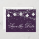 Cartão Postal De Anúncio Fleur de Lis Eggplant Purple Lights | Plum Wedding