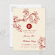 Flores de pêssego / ameixa orientais, flores da primavera em vermelho profundo, marfim e branco com um simples símbolo de dupla felicidade redondo. Um elegante e romântico design de cartão-postal de anúncio de casamento com tema chinês floral, caprichoso, moderno e sofisticado.