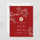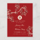 Flores de pêssego / ameixa orientais, flores da primavera em vermelho profundo, marfim e branco com um simples símbolo de dupla felicidade redondo. Um elegante e romântico cartão-postal de anúncio de casamento com tema chinês floral, caprichoso, moderno e sofisticado.