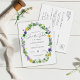 Este é um casamento simples e rústico, salvo o convite do cartão postal. A design apresenta uma coroa de flores silvestres primavera, incluindo os daffodilos amarelos, os pavios roxos, os pavimentões, as lavandas, os adoçantes, os dandélions, as tulipas e a erva-viva. Também inclui algumas pássaros-joias, uma libélula doce e uma mensagem personalizada. Seria perfeito para um primavera casual ou evento de verão. Entre em contato com o designer para obter outros itens correspondentes ou quaisquer variações solicitadas deste produto.
