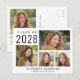 Anúncio de formatura moderno para ele ou ela com uma colagem de 4 fotos na frente e uma foto no verso. Adicione o ano da turma, o nome do graduado e a escola ou universidade em tipografia simples. No verso, adicione uma foto adicional e uma mensagem personalizada.