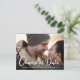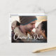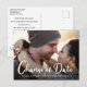 Mesmo que as circunstâncias exijam que você adie a data do seu casamento, mostre aos seus convidados que o seu amor continua com a sua foto de noivado favorita neste cartão-postal de alteração de data de casamento. "Mudança de Data" está escrito em grande letra cursiva branca na parte inferior da sua foto, e abaixo você pode personalizar seus nomes e se o casamento foi adiado, local alterado, etc. No verso, você pode personalizar ainda mais sua mensagem em mais detalhes e adicionar a nova data e local do casamento.