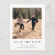 Este é um cartão de salvar a data de casamento clássico e elegante com uma foto simples e sofisticada na frente e verso, impresso em um postal conveniente.