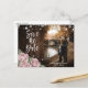 Foto de casamento de rosa rusticidade salve o cartão postal com madeira rústica adornada com rosas, fôlego de bebê e luzes de cordas. Design de cartão ideal para a sua festa de casamento de rosa poeirento rústico.
