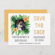 Um cartão simples, minimalista e sofisticado para salvar a data, com um modelo de foto emoldurado por grandes folhas de monstera e uma linda flor de hibisco laranja e frangipani amarelo. Ideal para todas as ocasiões especiais, desde um noivado, casamento, aniversário ou evento formal.