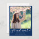 Anuncie a formatura do ensino médio de 2025 para familiares e amigos com este cartão postal de formatura personalizado moderno. O modelo de design apresenta sua foto na frente com escrita branca à mão que diz "Graduate" e seu nome, escola e ano abaixo para personalizar em um fundo azul real. O verso do cartão postal tem mais detalhes da sua formatura acentuados por um boné de formatura preto. Parabéns pela sua formatura! Criado pela artista Susan Coffey.