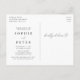 Precisa mudar sua data de casamento? Nossa elegante mudança de data. Cartões postais de adiamento do casamento são perfeitos para ajudá-lo a notificar os convidados da sua nova data de casamento. O na moda altera a data do cartão postal com a opção "alterar a data" em uma cobertura branca de script de caligrafia moderna com a sua foto horizontal do noivado. Personalize o postal adicionando seus nomes, endereço de devolução, detalhes do casamento, site do casamento, etc.