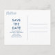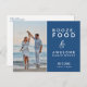 Salve os cartões postais de data em um design de diversão para o casal que mal pode esperar para celebrar com sua família e amigos. Design de tipografia azul e branca com a sua foto que diz: Booze, comida e espetaculares movimentos de dança. Personalize o lado frontal do cartão postal com sua foto, nomes e data de casamento. Adicione seu endereço de devolução e detalhes adicionais do casamento à parte traseira do cartão postal.