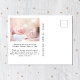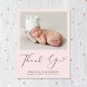 Anúncio de nascimento de menina em cartão postal rosa moderno e simples com a foto do seu recém-nascido e "Obrigado" em uma escrita contemporânea elegante com um floreio de coração. Personalize com o nome completo dela, data de chegada e estatísticas de nascimento em tipografia moderna. No verso, adicione uma foto adicional e seu anúncio personalizado e mensagem de agradecimento.