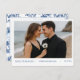 Procurando uma na moda para anunciar seu casamento? Este cartão-postal personalizável para salvar a data permite que você carregue sua foto de noivado favorita enquanto mantém o design polido e moderno. Apresentando uma elegante colocação de tipo que se adapta às roupas mais escuras e às definições de praia, o verso mostra um padrão azul de chinoiserie de eterno para um acabamento clássico. Perfeito para casamentos costeiros, casais modernos, ou qualquer um que queira um toque refinado e pessoal.